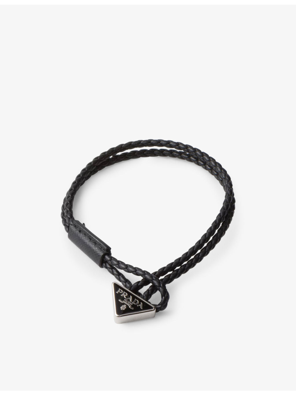 PRODUCT DETAILS - Prada leather bracelet - 100% leather - Slips on - Braided, brand plaque - Specialist leather clean