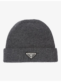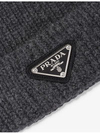 PRODUCT DETAILS - Prada cashmere and wool-blend beanie hat - 65% virgin wool, 25% cashmere, 9% polyamide, 1% elastane - Pulls on - All-over tonal design, chunky ribbed knit, folded trim, logo plaque at front - Made in Italy - Do not wash - Heavyweight, slight stretch Ref: R04268238