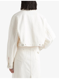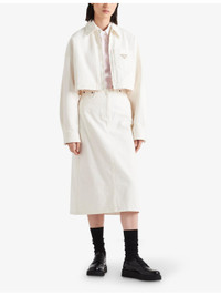PRODUCT DETAILS - Prada denim jacket - 100% cotton - Exposed zip fastening to the front - Relaxed fit, collar, long sleeves, dropped shoulders, patch pocket to the chest with enamelled metal triangle brand plaque, welt pockets to the sides, buttoned cuffs, garment dyed, cropped hem, unlined - Dry clean - True to size - Lightweight, non-stretch Ref: R04355512