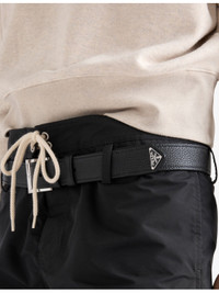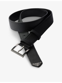 PRODUCT DETAILS - Prada leather belt - 100% calfskin leather - Adjustable buckle fastening - Grained texture, metal buckle, enamelled metal triangle brand plaque at tip, silver-toned hardware - Height 3.3cm - Specialist leather clean Ref: R04482032