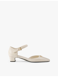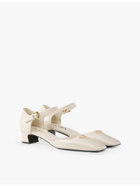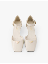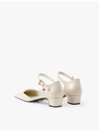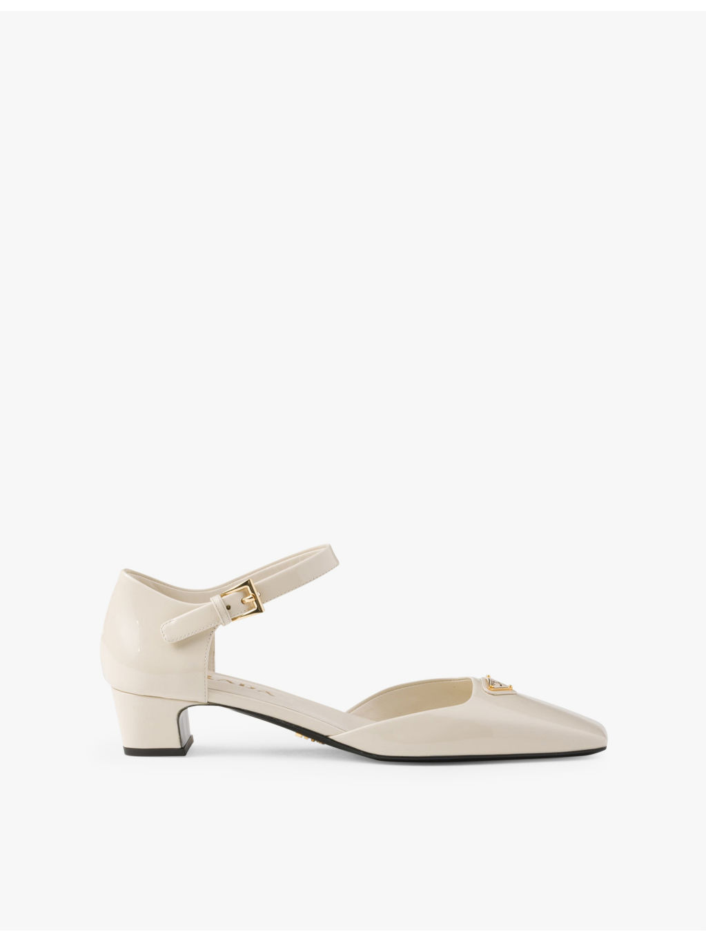 PRODUCT DETAILS - Prada patent-leather Mary Jane courts - 100% leather - Adjustable buckle fastening - Square toe, enamelled metal triangle brand plaque to the front, front strap, all-over patent finish, covered block heel - Heel height 1.37” - Specialist leather clean - Upper: 100% leather - Lining: 100% leather - Sole: 100% leather; 100% rubber Ref: R04349239