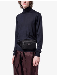 PRODUCT DETAILS - Prada Re-Nylon and Saffiano-leather belt bag - 50% saffiano leather, 50% recycled nylon - Zip fastening - Adjustable nylon tape belt with side-release buckle, front enamelled metal triangle logo, external zipper pocket, internal zipper pocket, Re-Nylon lining - Height 12cm, width 21cm, depth 4cm - Sponge clean - Made in Italy Ref: R04273229