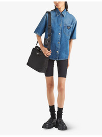 PRODUCT DETAILS - Prada denim shirt - 100% cotton - Button fastening - Relaxed fit, short sleeves, patch pocket, brand plaque, silver-toned hardware - Dry clean - True to size - Midweight, non-stretch Ref: R04322728
