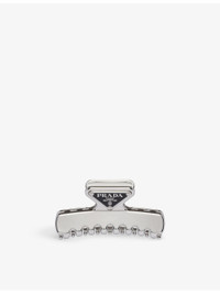 PRODUCT DETAILS - Prada brass hair clip - 100% brass - Enamelled-metal triangle logo, silver-tone - Wipe with a clean, dry cloth - Made in Italy - Hypoallergenic and nickel-free Ref: R04268370