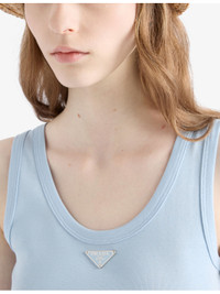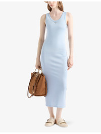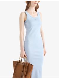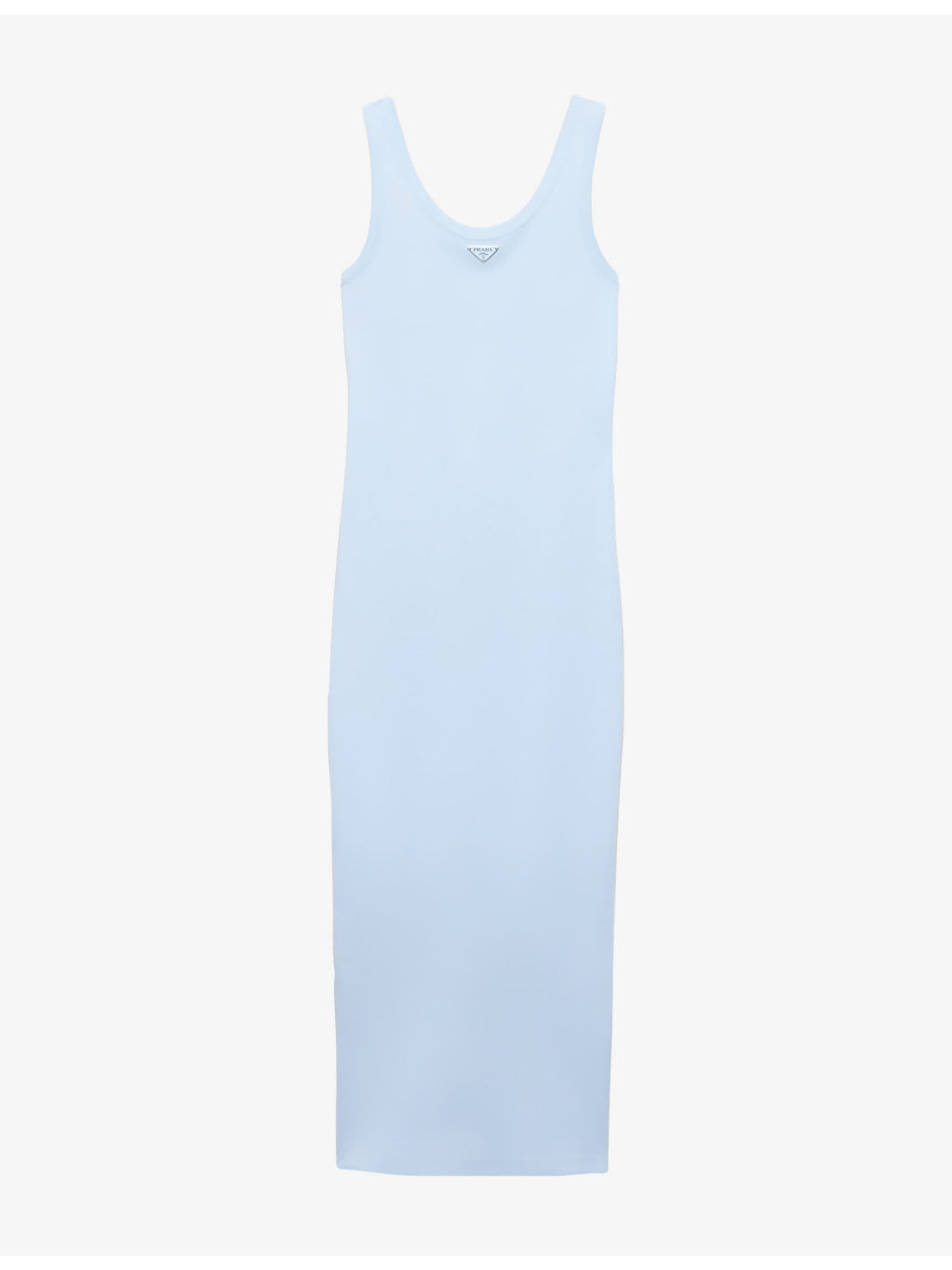 PRODUCT DETAILS - Prada cotton midi dress - 100% cotton - Slips on - Slim fit, scoop neck, sleeveless, enamelled triangle brand plaque to the front, all-over ribbed texture, back slit, midi length - Dry clean - True to size - Lightweight, slight stretch Ref: R04322722