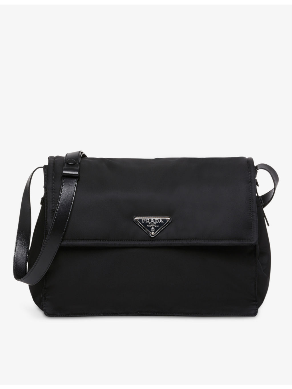PRODUCT DETAILS - Prada recycled-nylon shoulder bag - 100% recycled nylon - Magnetic closure - Rectangular silhouette, fold-over flap, brand plaque on front, leather strap - Height 16cm, width 23cm, length 11cm - Wipe with a clean, dry cloth - Made in Italy Ref: R04069341
