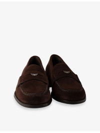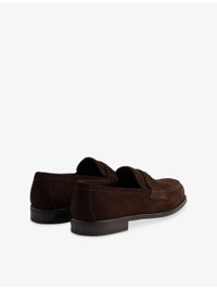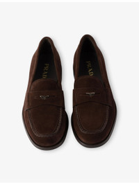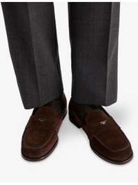 PRODUCT DETAILS - Pradasuede loafers - 100% suede - Almond toe, apron stitching, penny strap, triangle brand plaque at penny strap, flat sole - Specialist leather clean - Made in Italy - Upper: 100% suede - Lining: 100% leather - Sole: 100% leather; 100% rubber Ref: R04498570