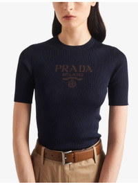 PRODUCT DETAILS - Prada silk top - 100% silk - Slips on - Regular fit, round neck, short sleeves, branded intarsia, ribbed texture, knitted - Dry clean - True to size - Lightweight, slight stretch Ref: R04301727