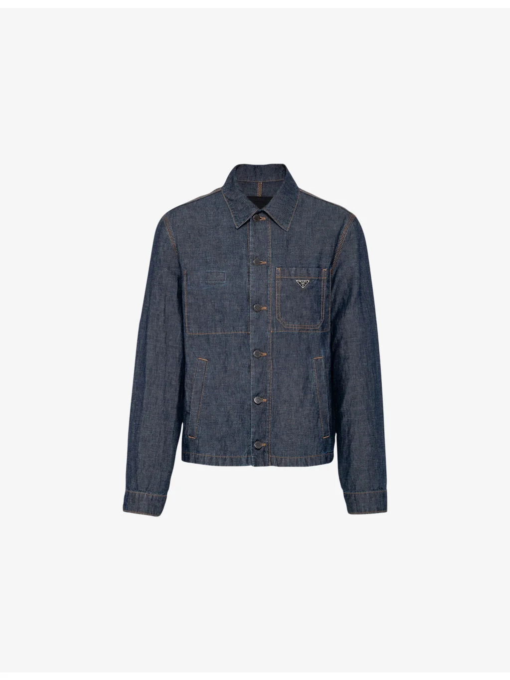 PRODUCT DETAILS - Prada cotton-blend jacket - 65% cotton, 35% linen - Button fastening - Regular fit, collar, long sleeves, buttoned cuffs, chest pocket, branded plaque, side pockets - Dry clean - True to size - Lightweight, non-stretch Ref: R04337623