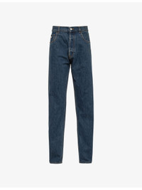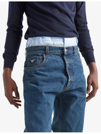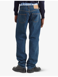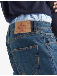 PRODUCT DETAILS - Prada denim jeans - 100% cotton - Button fastening - Denim treatment, classic fit, straight leg, low-rise waist, contrasting stitching, five pockets, branded triangle logo, brand patch at back pocket - Machine wash mild - Made in Italy - Midweight, non-stretch Ref: R04320512