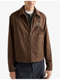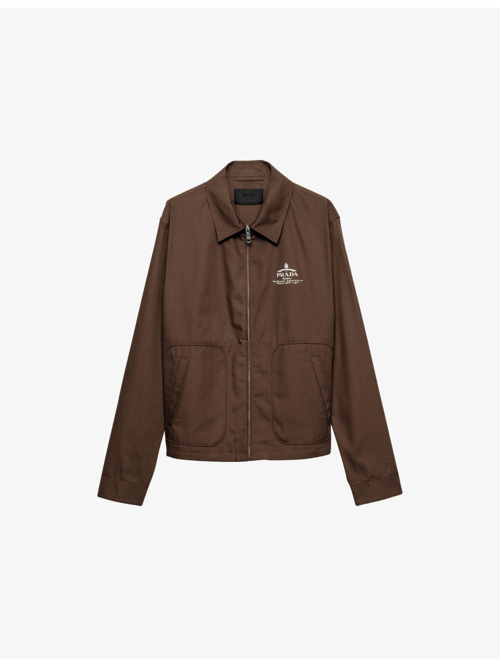 PRODUCT DETAILS - Prada woven jacket - 65% polyester, 35% cotton - Zip fastening - Regular fit, collar, long sleeves, branded print to chest, side pockets - Hand wash - True to size - Midweight, non-stretch Ref: R04373245
