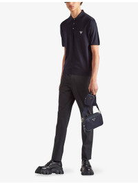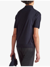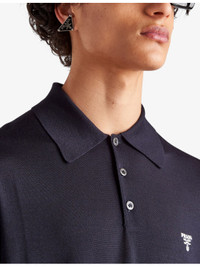 PRODUCT DETAILS - Prada wool polo shirt - 100% wool - Button fastening - Regular fit, polo collar, short sleeves, branded embroidery to chest - Dry clean - True to size - Model is 6ft 2in/1.88m and wears a size UK 38 - Lightweight, slight stretch Ref: R04471393