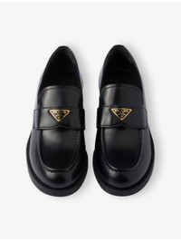 PRODUCT DETAILS - Prada leather loafers - 100% leather - Round toe, enamelled triangle logo, polished finish, low heel - Specialist leather clean - Made in Italy - Upper: 100% leather - Lining: 100% leather - Sole: 100% rubber Ref: R04509421