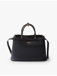 PRODUCT DETAILS - Prada leather tote bag - 100% leather - Open top - Two top handles, detachable, adjustable leather shoulder strap, decorative belt with buckle, foiled branding to the front, leather interior with central pocket - Height 23cm, width 32cm, depth 11cm - Specialist leather clean - Made in Italy Ref: R04321956
