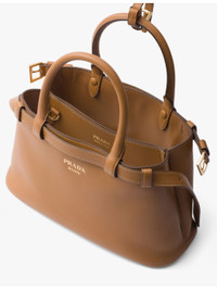 PRODUCT DETAILS - Prada leather tote bag - 100% leather - Open top - Two top handles, detachable, adjustable leather shoulder strap, decorative belt with buckle, foiled branding to the front, leather interior with central pocket, gold-toned hardware - Height 18cm, width 28cm, depth 10.5cm - Specialist leather clean - Made in Italy Ref: R04321980