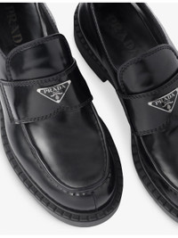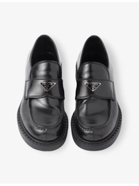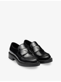 PRODUCT DETAILS - Prada leather loafers - 100% leather - Round closed toe, elasticated penny strap on vamp, enamelled metal triangle brand plaque at front, tonal stitching, brushed finish, para-style half sole, lug sole - Specialist leather clean - 35mm / 1.3in - Made in Italy - Upper: 100% leather - Lining: 100% leather - Sole: 100% rubber Ref: R04461372
