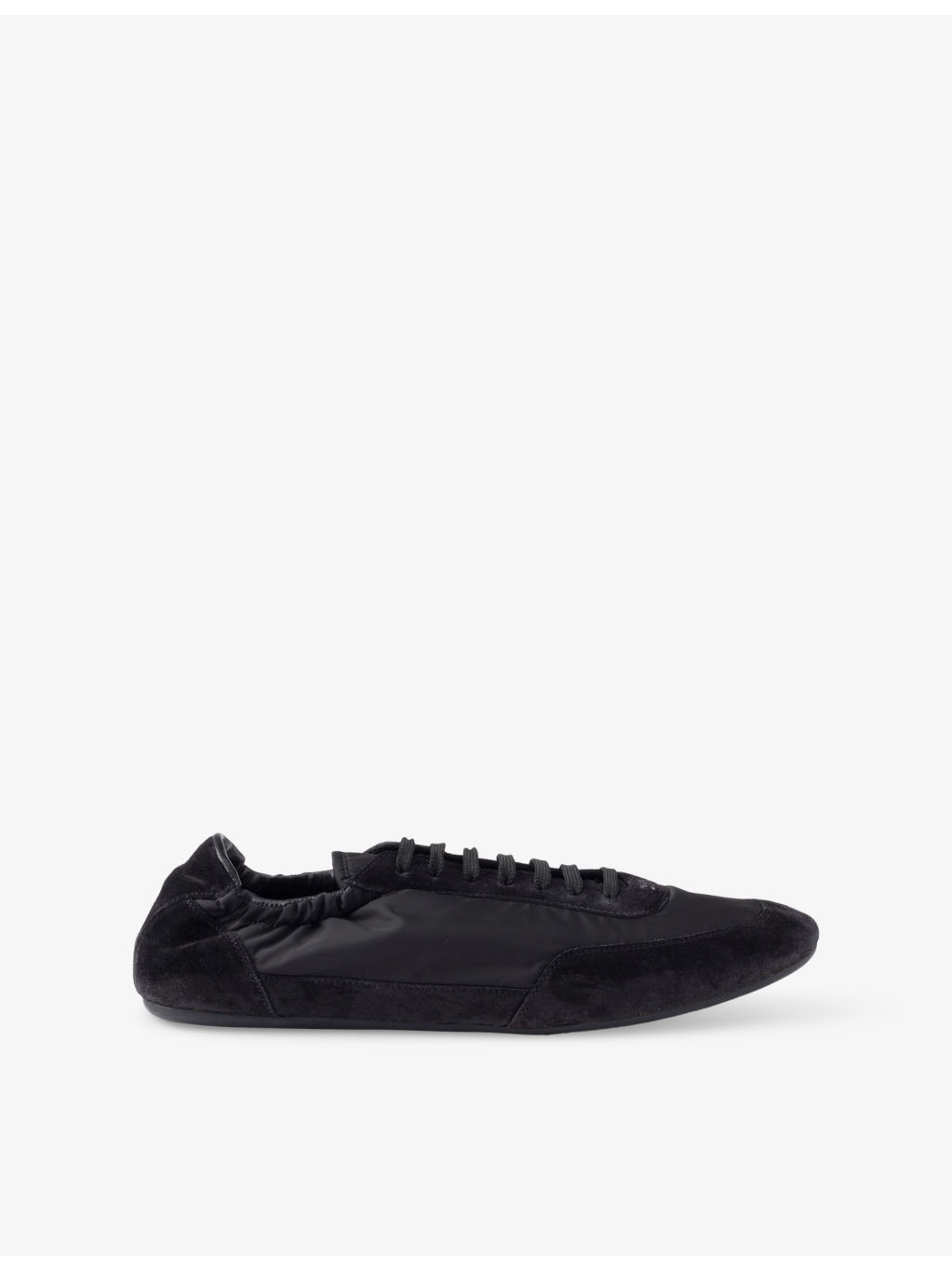 PRODUCT DETAILS - Prada low-top trainers - 100% polyamide - Lace-up fastening - Low top, round closed toe, screen-printed logo at front, elasticated opening, flat sole, panelled design - Wipe with a clean, dry cloth - Made in Italy - Upper: 100% polyamide - Lining: 100% leather - Sole: 100% rubber Ref: R04461373