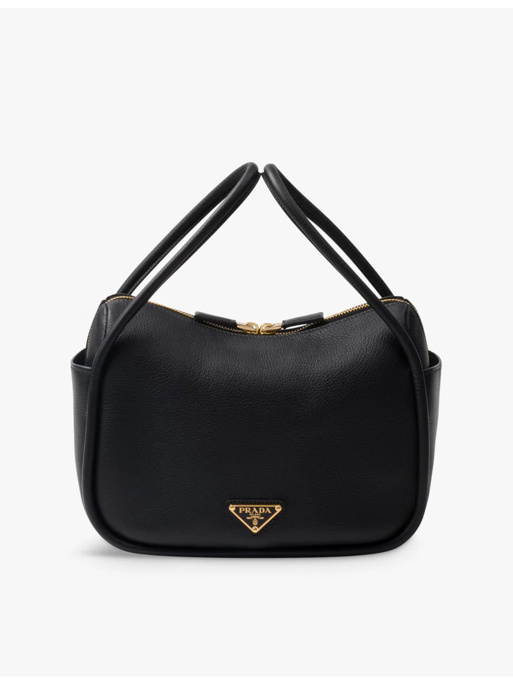 PRODUCT DETAILS - Prada leather shoulder bag - 100% leather; lining 100% nylon - Zip fastening - Two top handles, removable shoulder strap, enamelled metal triangle brand plaque to the front, gold-toned hardware, two open pockets to the sides, one main interior compartment, interior slip pocket, logo-print lining - Height 18cm, width 25cm, depth 10.5cm - Specialist leather clean - Made in Italy Ref: R04373127