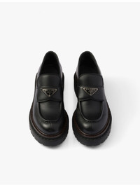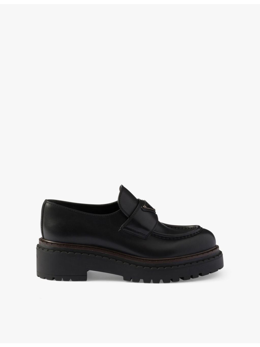 PRODUCT DETAILS - Prada leather loafers - 100% leather - Slips on - Closed round toe, single penny strap on vamp, enamelled metal triangle brand plaque at front, double welt with notched effect, contrasting trim, chunky sole - Heel height 2.1"" - Specialist leather clean - Made in Italy - Upper: 100% leather - Lining: 100% leather - Sole: 100% rubber Ref: R04361404