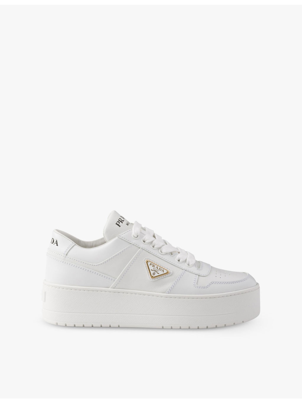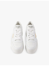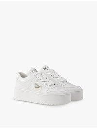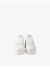PRODUCT DETAILS - Prada leather low-top trainers - 100% leather - Lace-up fastening - Closed round toe, perforated toe, brand plaque at side, typography at tongue, chunky platform sole, removable insole - Heel height 1.9in - Specialist leather clean - Made in Italy - Upper: 100% leather - Lining: 100% leather - Sole: 100% rubber Ref: R04349236