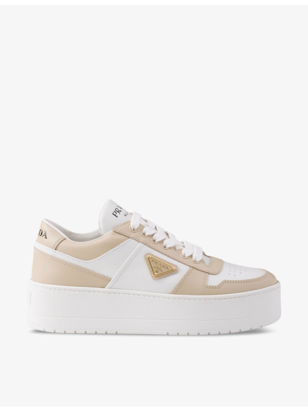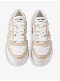 PRODUCT DETAILS - Prada leather low-top trainers - 100% leather - Lace-up fastening - Closed round toe, perforated toe, brand plaque at side, typography at tongue, chunky platform sole - Heel height 1.9"" - Specialist leather clean - Upper: 100% leather - Lining: 100% leather - Sole: 100% rubber Ref: R04349238