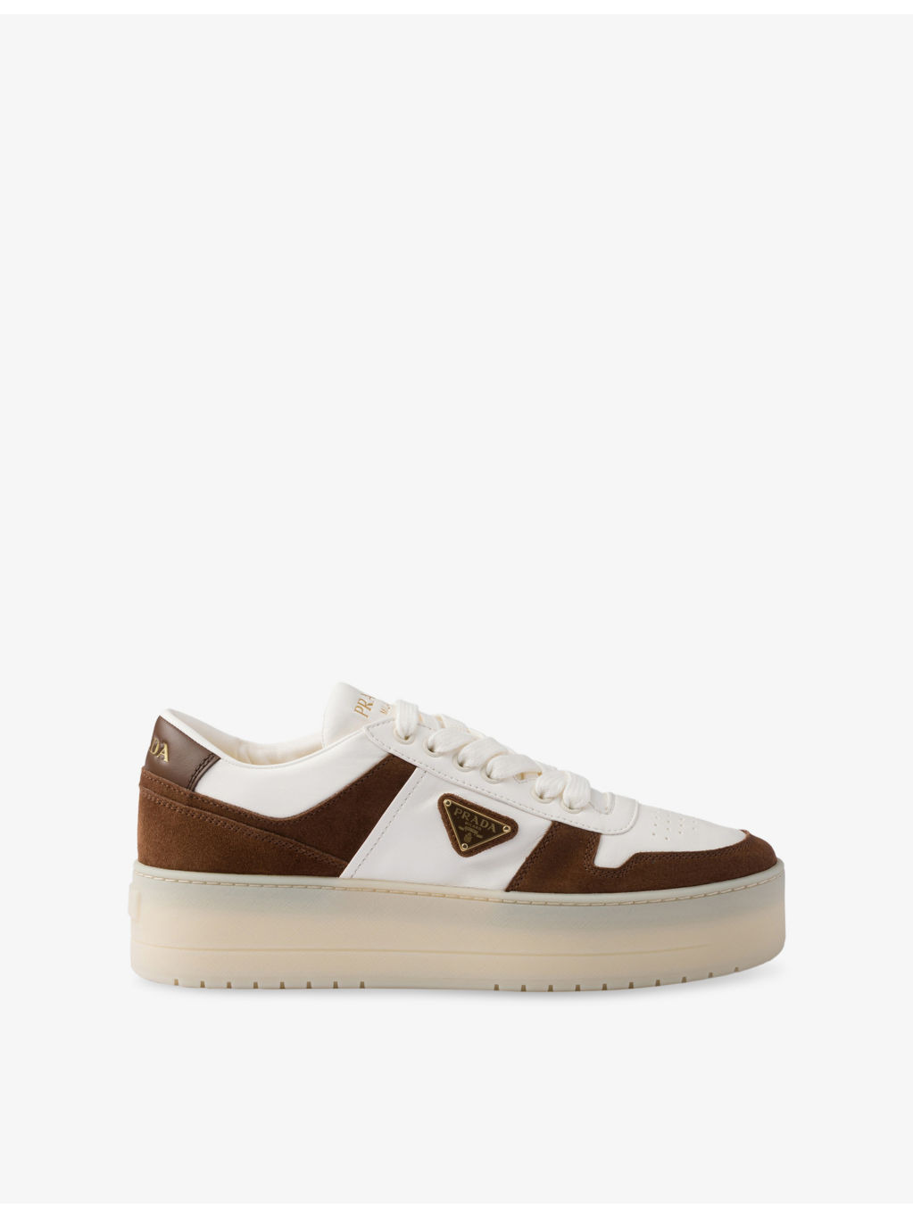 PRODUCT DETAILS - Prada leather and suede trainers - 100% leather - Lace-up fastening - Round toe, low top, panelled design, branded details, chunky sole - Specialist leather clean - Upper: 100% leather - Lining: 100% leather - Sole: 100% rubber Ref: R04517679