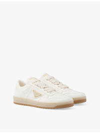 PRODUCT DETAILS - Prada leather low-top trainers - 100% leather - Lace-up fastening - Low top, closed round toe, panelled construction, enamelled metal triangle logo at front, contrast rubber sole, tread with geometric lines - Specialist leather clean - Upper: 100% leather - Made in Italy - Lining: 100% leather - Sole: 100% rubber - Please note, we are unable to accept in-store returns on Prada orders Ref: R04321926