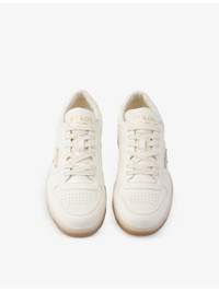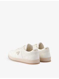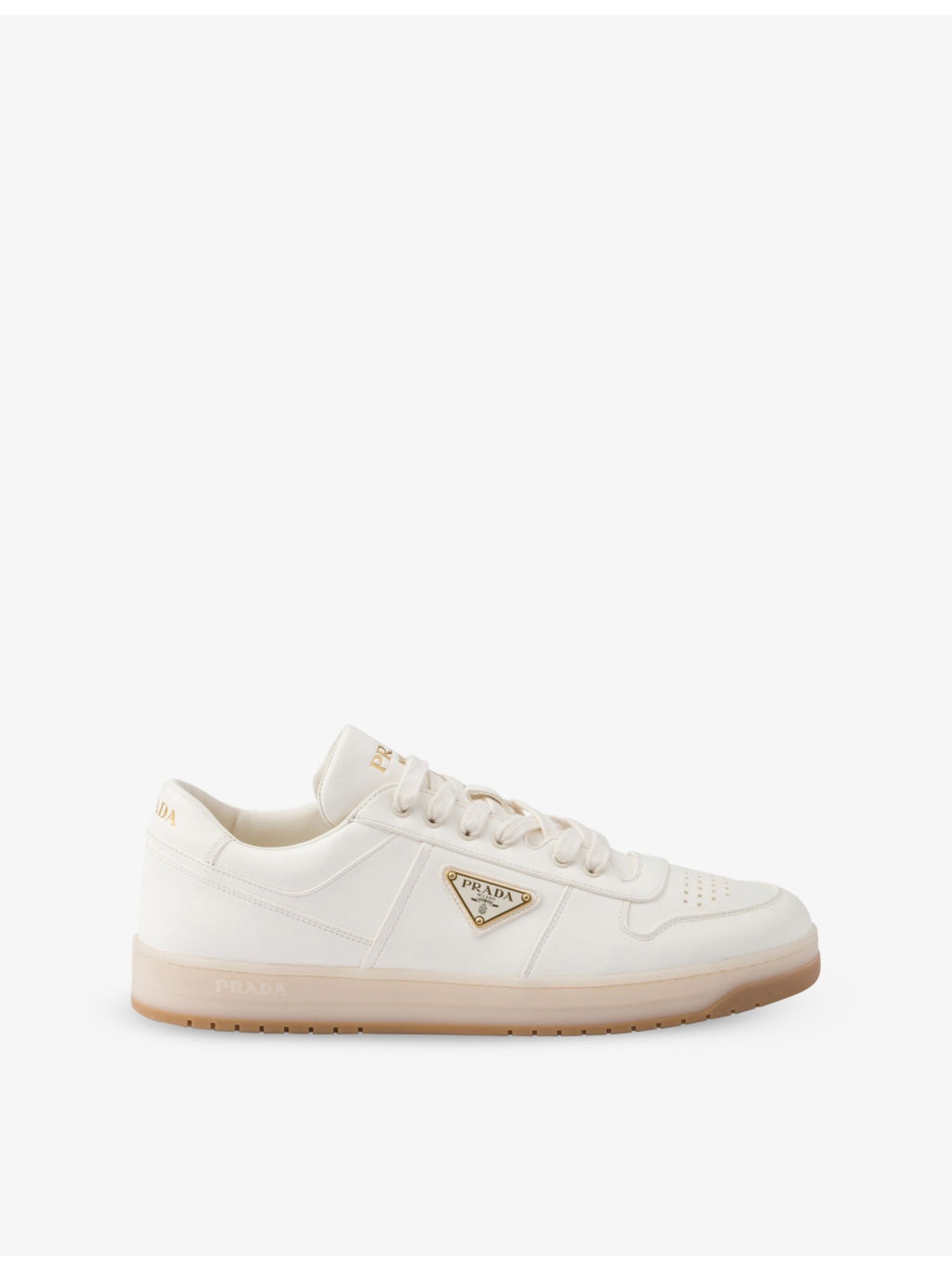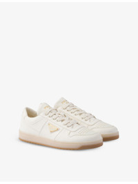 PRODUCT DETAILS - Prada low-top leather trainers - 100% nappa leather - Lace-up fastening - Perforated toe, brand enamel logo at side, brand foiled text, contrast sole - Specialist leather clean - Upper: 100% leather - Lining: 100% synthetic - Sole: 100% rubber Ref: R04401661
