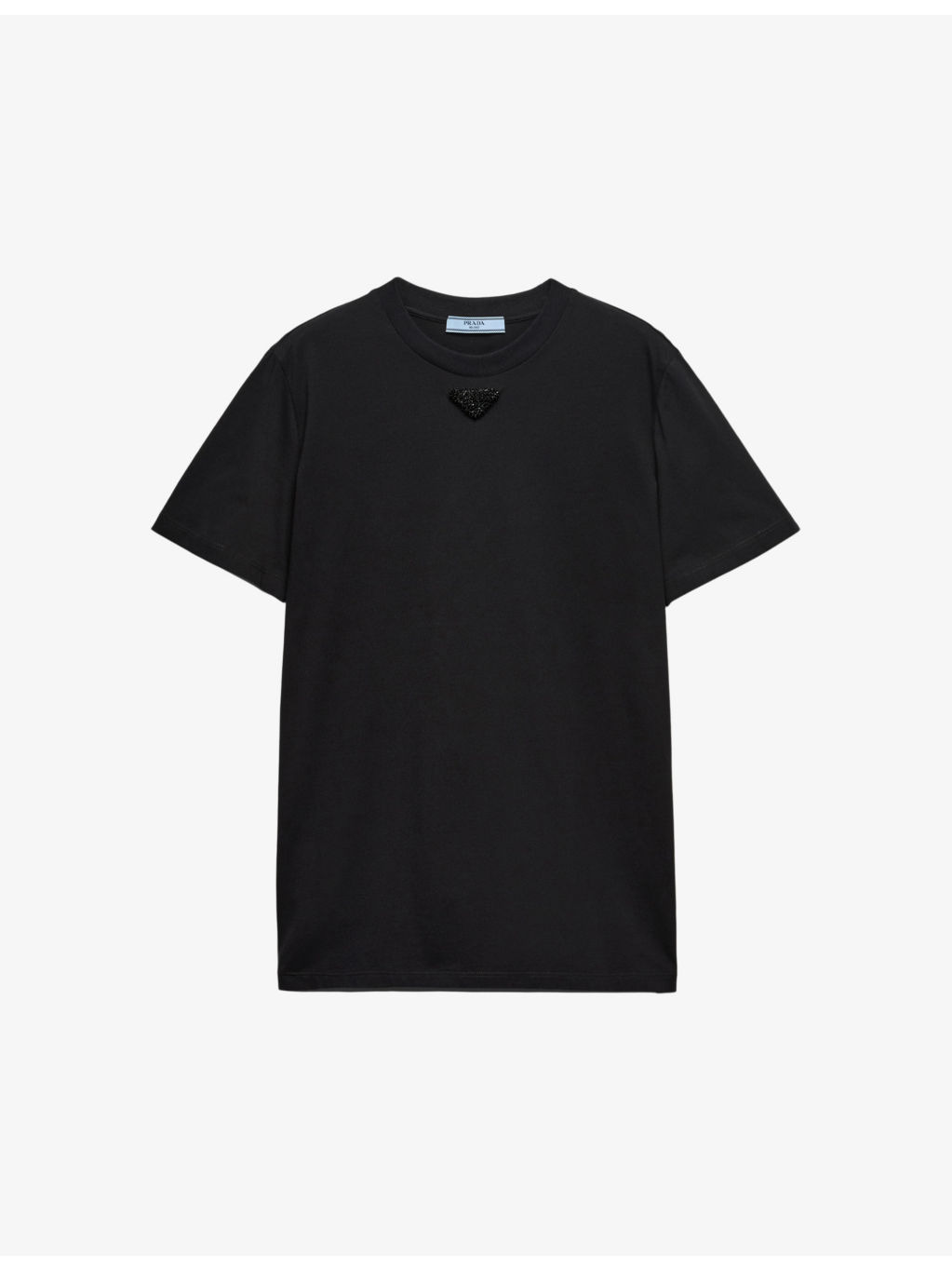 PRODUCT DETAILS - Prada cotton-jersey T-shirt - 100% cotton - Slips on - Regular fit, crewneck, ribbed trim at neck, short sleeves, embroidered triangle logo at chest - Machine wash cold - Model is 5ft 10in/1.78m and wears a size UK 8 - Lightweight, slight stretch Ref: R04401668