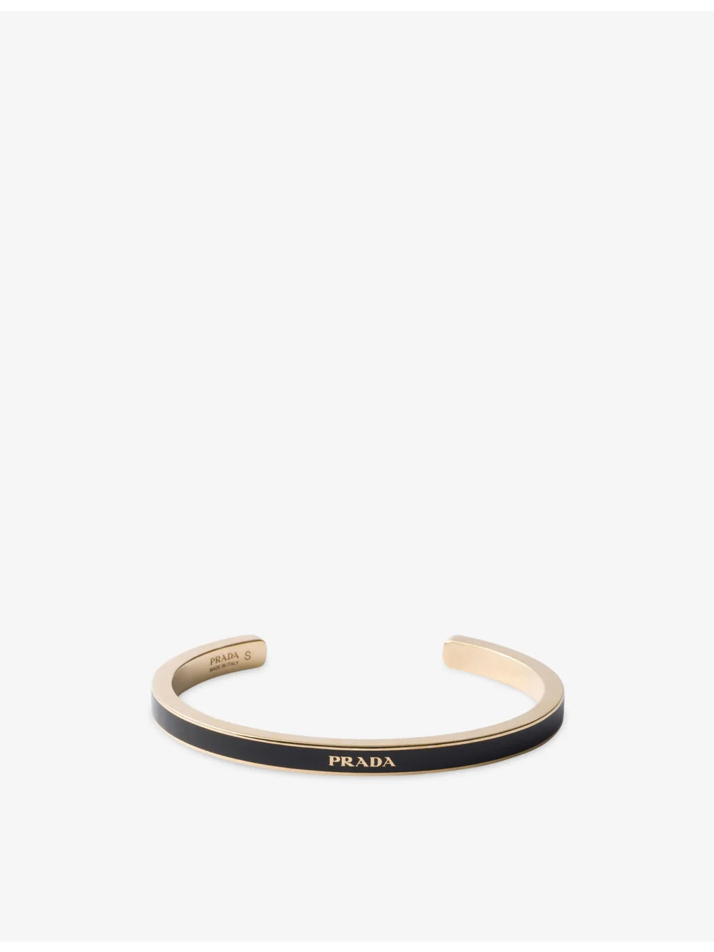 PRODUCT DETAILS - Prada metal bracelet - 100% metal - Slips on - Cuff design enamelled logo, gold-tone - Width: 6cm - Wipe with a clean, dry cloth Ref: R04615878