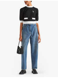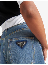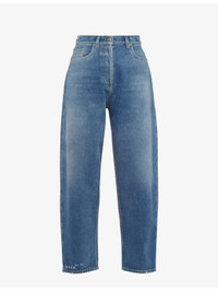 PRODUCT DETAILS - Prada cotton-denim jeans - 100% cotton - Exposed button and concealed zip-fly fastenings to the front - Relaxed fit, high rise, belt loops, five-style pockets, tapered leg, all-over faded wash, whiskering, triangle brand plaque to the back, contrast stitching - Dry clean - True to size - Midweight, non-stretch Ref: R04337216