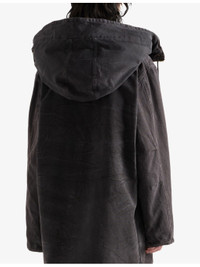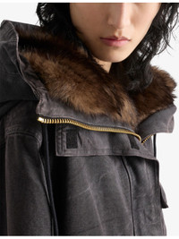 PRODUCT DETAILS - Prada cotton-canvas coat - 100% cotton - Zip fastening - Regular fit, drawstring hood with faux-fur, long sleeves, flap pockets at front, garment-dyed faded wash, branded hardware - Machine wash cold - Made in Italy - Model is 5ft 10in/1.78m and wears a size UK 8 - Heavyweight, non-stretch Ref: R04455270