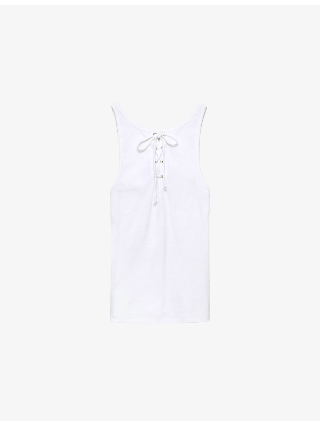 PRODUCT DETAILS - Prada cotton-jersey tank top - 100% cotton - Regular fit, round neck, sleeveless, lace-up at front, triangle patch at back - Machine wash cold - Made in Italy - True to size - Model is 5ft 10in/1.78m and wears a size UK 8 - Lightweight, slight stretch Ref: R04459081