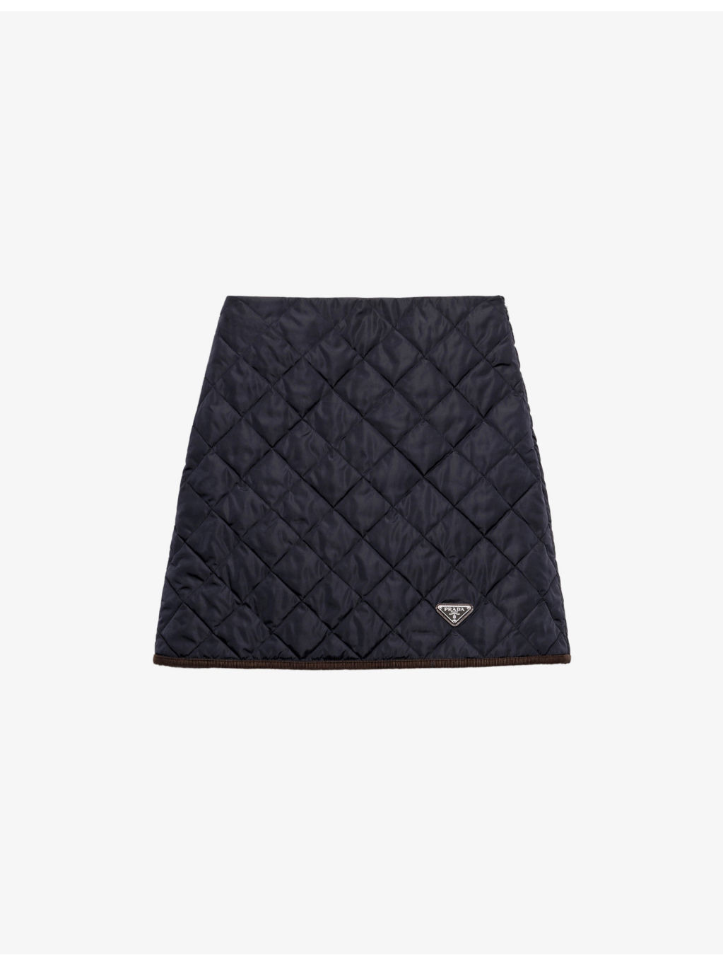 PRODUCT DETAILS - Prada nylon mini skirt - 100% nylon - Zipper and hook closure - Regular fit, mid-rise, structured waistband, quilted design, enamelled triangle logo, split hem - Dry clean only - Made in Italy - True to size - Model is 5ft 10in/1.78m and wears a size UK 8 - Lightweight, non-stretch Ref: R04494621