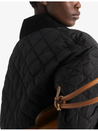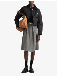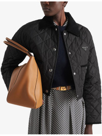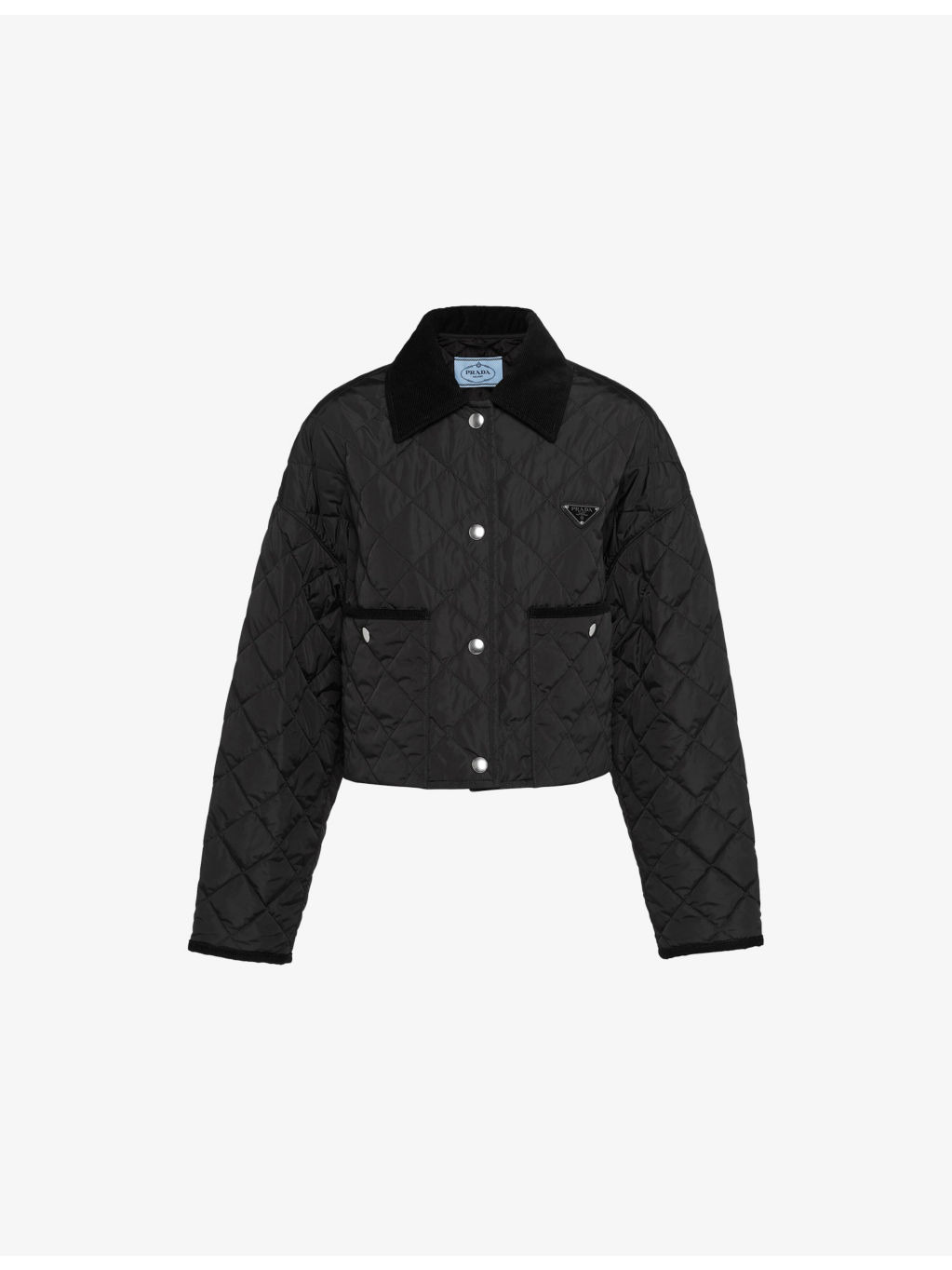 PRODUCT DETAILS - Prada nylon jacket - 100% nylon - Pressed stud fastening - Regular fit, collar, long sleeves, enamelled triangle logo at chest, pockets at front, quilted pattern, cropped - Dry clean - True to size - Model is 5ft 10in/1.78m and wears a size UK 8 - Lightweight, non-stretch Ref: R04434098