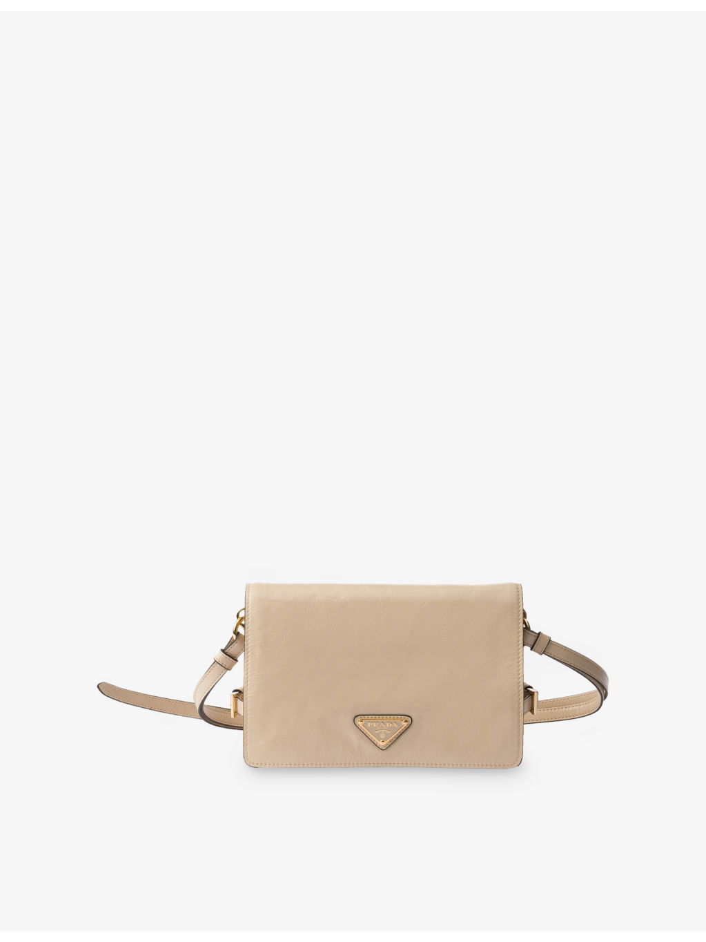 PRODUCT DETAILS - Prada leather bag - 100% leather - Magnetic fastening - Adjustable shoulder strap, rectangle silhouette, flap-over design, logo badge at the front - Height 13cm, width 22cm, length 8cm - Specialist leather clean Ref: R04367354
