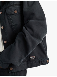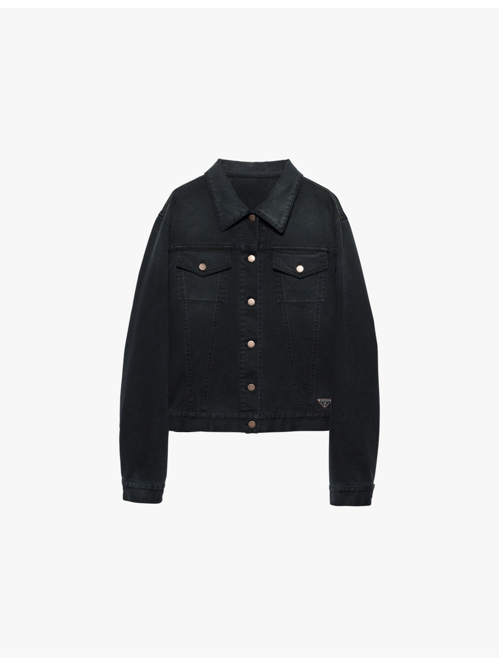 PRODUCT DETAILS - Prada denim jacket - 100% cotton - Exposed button fastening at front - Relaxed fit, classic collar, two patch pockets at chest, logo badge at the side - Hand wash - Made in Italy - True to size - Midweight, non-stretch Ref: R04373242