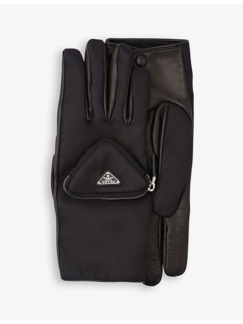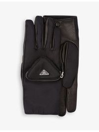 PRODUCT DETAILS - Prada recycled-nylon and leather gloves - 100% lamb leather; trim 100% recycled nylon - Contrast textured design, zipped pocket, logo plaque - Specialist dry clean - Made in Italy Ref: R03817241