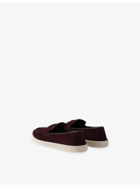 PRODUCT DETAILS - Pradasuede loafers - 100% suede - Slips on - Closed round toe, logo hardware at front, single strap band on vamp, apron with pinched stitch seam - Specialist leather clean - Made in Italy - Upper: 100% suede - Lining: 100% leather - Sole: 100% synthetic Ref: R04373219