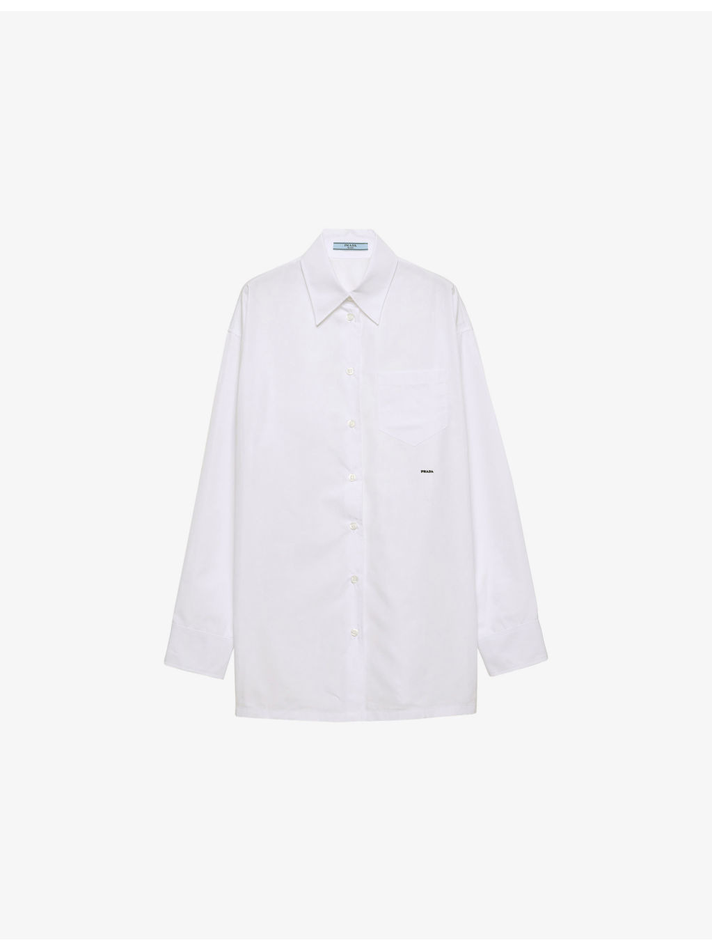 PRODUCT DETAILS - Prada cotton poplin shirt - 100% cotton - Button fastening - Relaxed fit, classic collar, long sleeves, patch pocket at front, text logo embroidery at front - Lightweight, non-stretch - Please note, we are unable to accept in-store returns on Prada orders Ref: R04517676