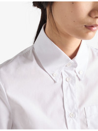 PRODUCT DETAILS - Prada cotton poplin shirt - 100% cotton - Button fastening - Relaxed fit, button down classic collar, short sleeves, patch pocket at front, text logo embroidery at front, cropped - Lightweight, non-stretch - Please note, we are unable to accept in-store returns on Prada orders Ref: R04517678