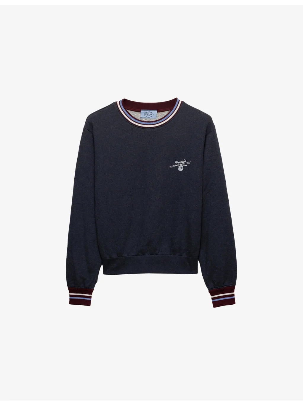 PRODUCT DETAILS - Prada cotton-fleece sweatshirt - 100% cotton - Oversized fit, crewneck, long sleeves, logo print at chest, triangle logo embroidered at back, striped ribbed trims, jersey texture - Machine wash at 30°C - True to size - Lightweight, slight stretch Ref: R04586399