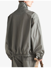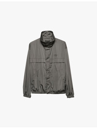 PRODUCT DETAILS - Prada nylon jacket - 100% nylon - Exposed zip fastening at front - Relaxed fit, funnel neck, logo badge at the chest, long sleeves, elasticated cuffs, two pockets at the side, elasticated hem - Hand wash - Model is 6ft 2in/1.88m and wears a size medium - Lightweight, non-stretch Ref: R04337630