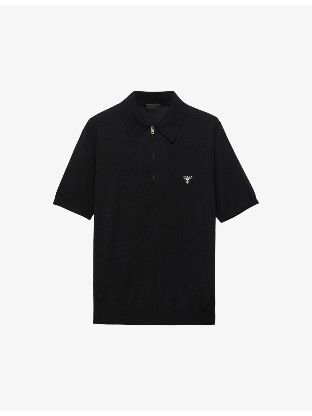 PRODUCT DETAILS - Prada wool polo shirt - 100% wool - Zip fastening at front - Regular fit, collar, short sleeves, superfine texture, logo embroidery - Dry clean only - Made in Italy - Lightweight, non-stretch Ref: R04316129