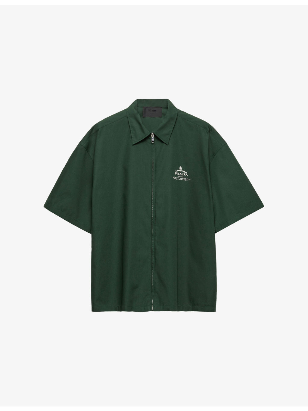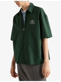 PRODUCT DETAILS - Prada nylon shirt - 100% nylon - Concealed zip fastening at front - Regular fit, classic collar, logo embroidery at the chest, short sleeves, zip-up design - Dry clean - Model is 6ft 2in/1.90m and wears a size 48 - Lightweight, non-stretch Ref: R04347467