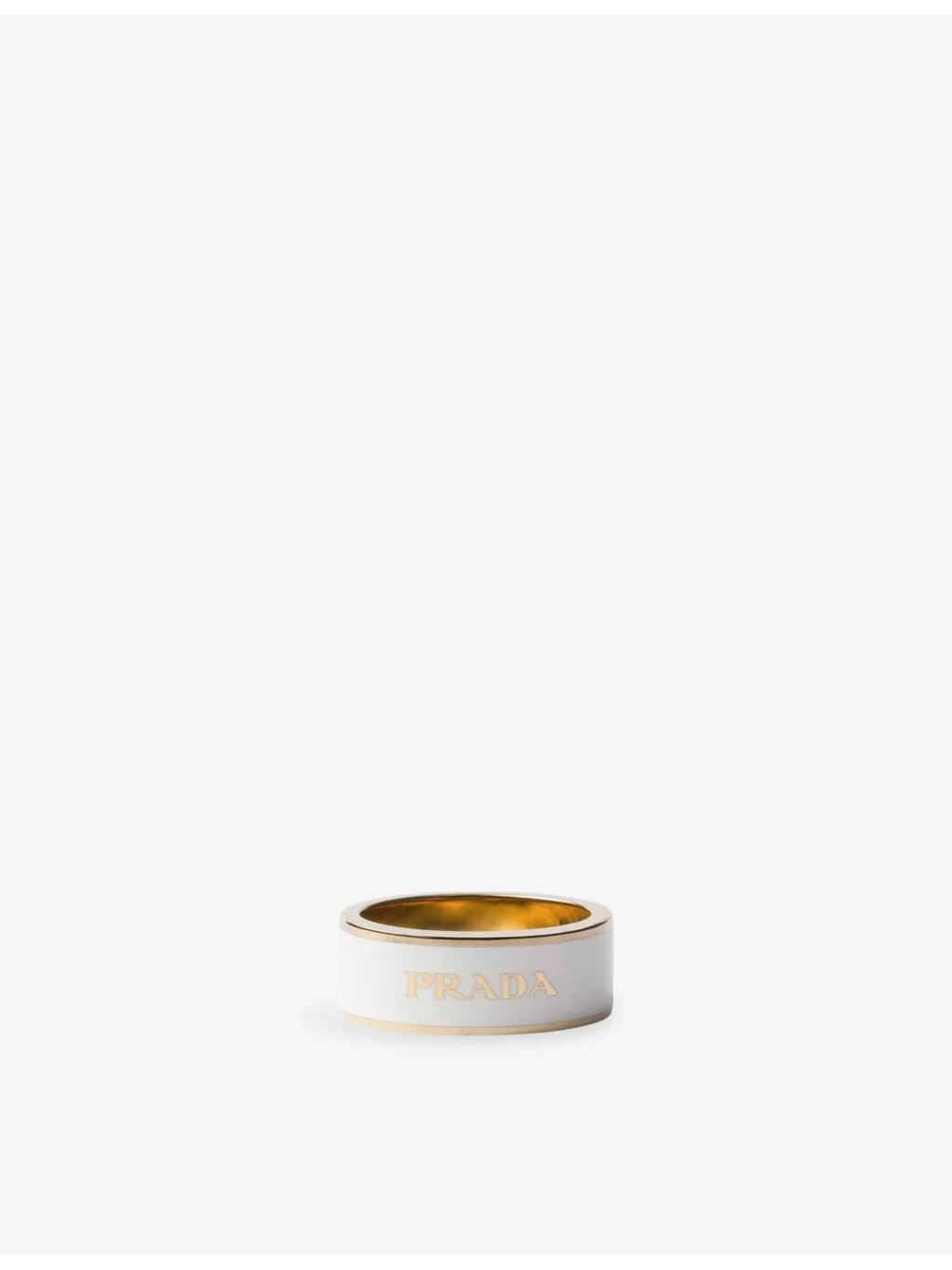 PRODUCT DETAILS - Prada brass ring - 100% brass - Enamelled design, logo, polished finish - Height 0.8cm - Wipe with a clean, dry cloth Ref: R04568430