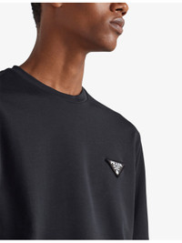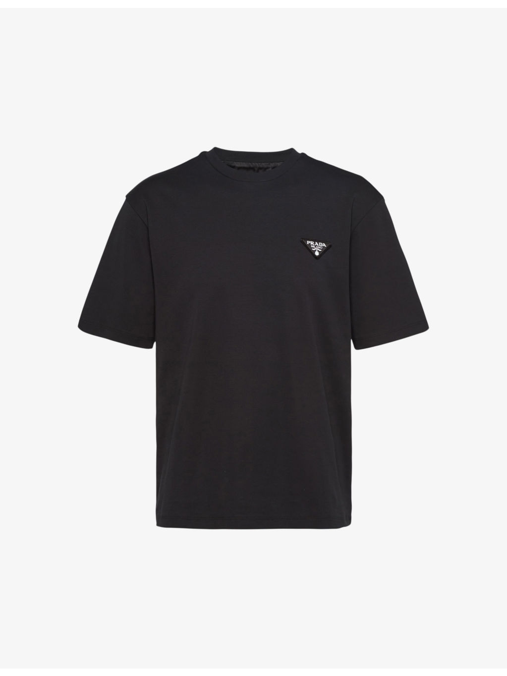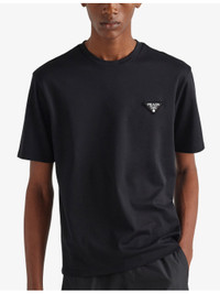 PRODUCT DETAILS - Prada cotton T-shirt - 100% cotton - Slips on - Regular fit, round neck, ribbed trim at neck, short sleeves, triangle brand batch at chest - Hand wash cold - True to size - Lightweight, slight stretch