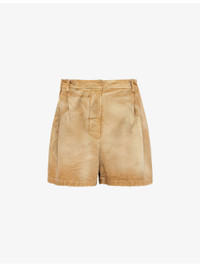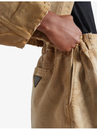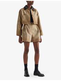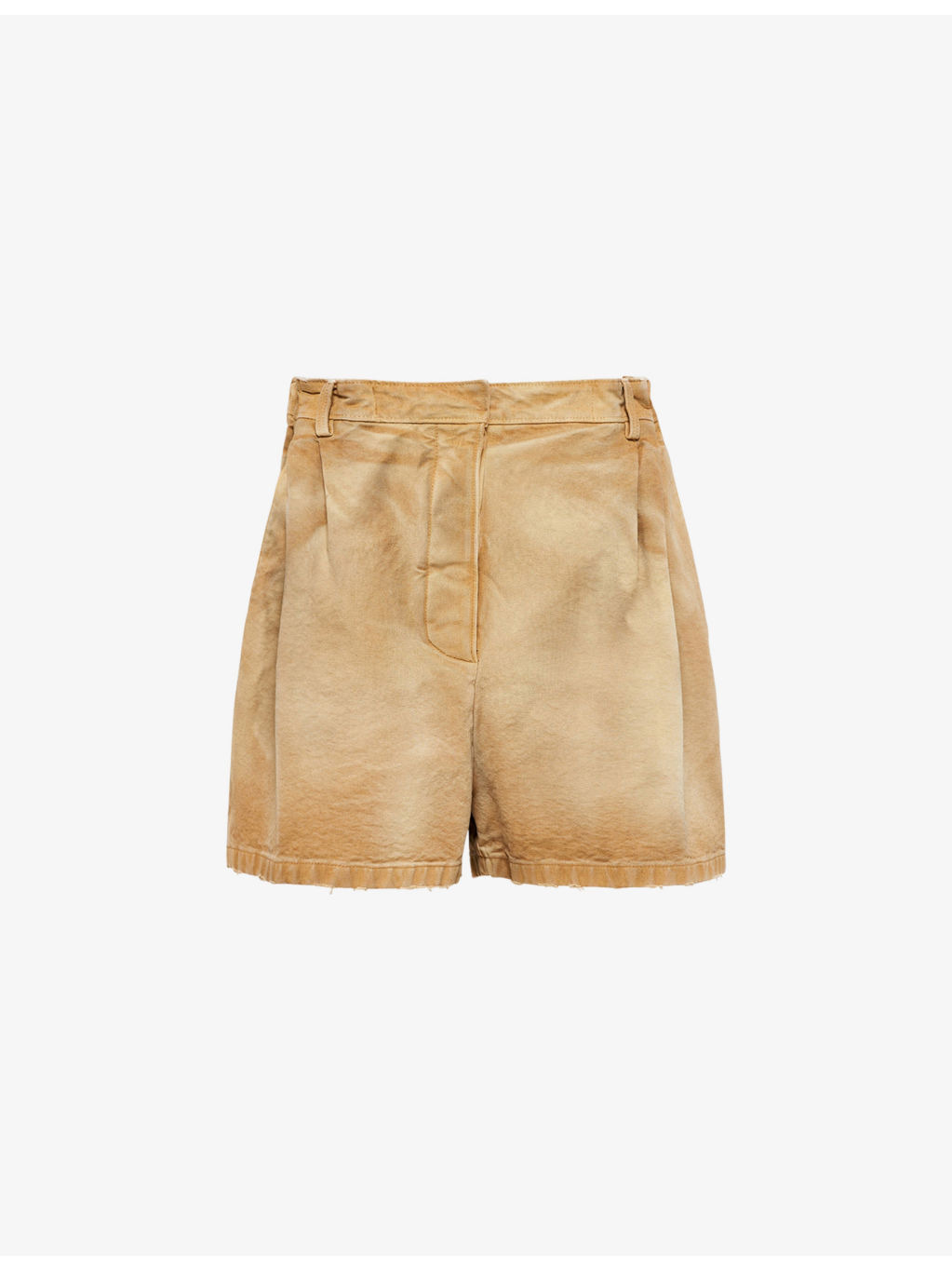 PRODUCT DETAILS - Prada cotton shorts - 100% cotton - Concealed button, hook-and-eye and zip-fly fastening at front - Relaxed fit, high rise, belt loops, garment-dyed finish, two welt pockets at the front and back, triangle logo patch at the back - Dry clean - True to size - Model is 5ft 10in/1.78m and wears a size UK 8 - Lightweight, non-stretch Ref: R04321934