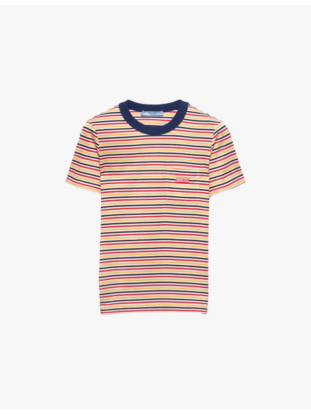 PRODUCT DETAILS - Prada cotton-lisle T-shirt - 100% cotton - Regular fit, round neck, short sleeves, all-over striped pattern, patch pocket at chest, logo patch at chest pocket, contrasting trim at neckline - Dry clean - True to size - Model is 5ft 10in/1.78m and wears a size UK 8 - Lightweight, non-stretch Ref: R04460427