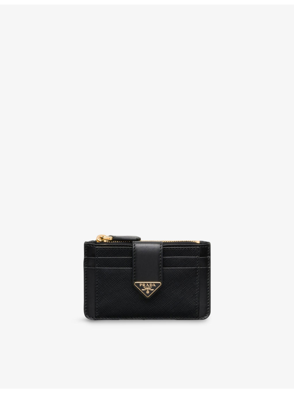 PRODUCT DETAILS - Prada leather card holder - 100% leather - Snap closure - Rectangular shape, front flap, logo plaque at front, gold-toned hardware, five internal card slots, one internal zipped pocket, foiled branding, fully lined - Height 7cm, width 12cm - Specialist leather clean Ref: R04268449